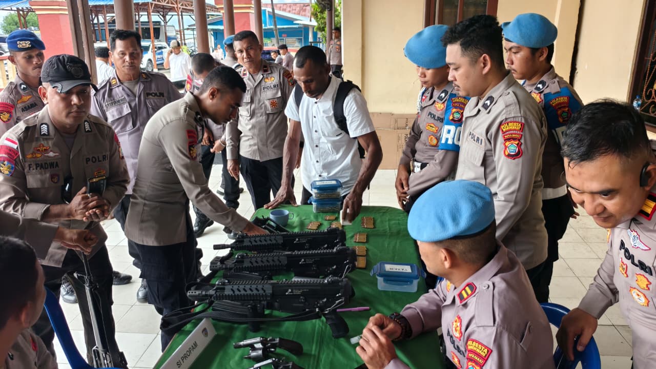 Dalam kegiatan ini, puluhan senjata api milik personil Polresta Manokwari dan Polsek Jajaran telah diperiksa.