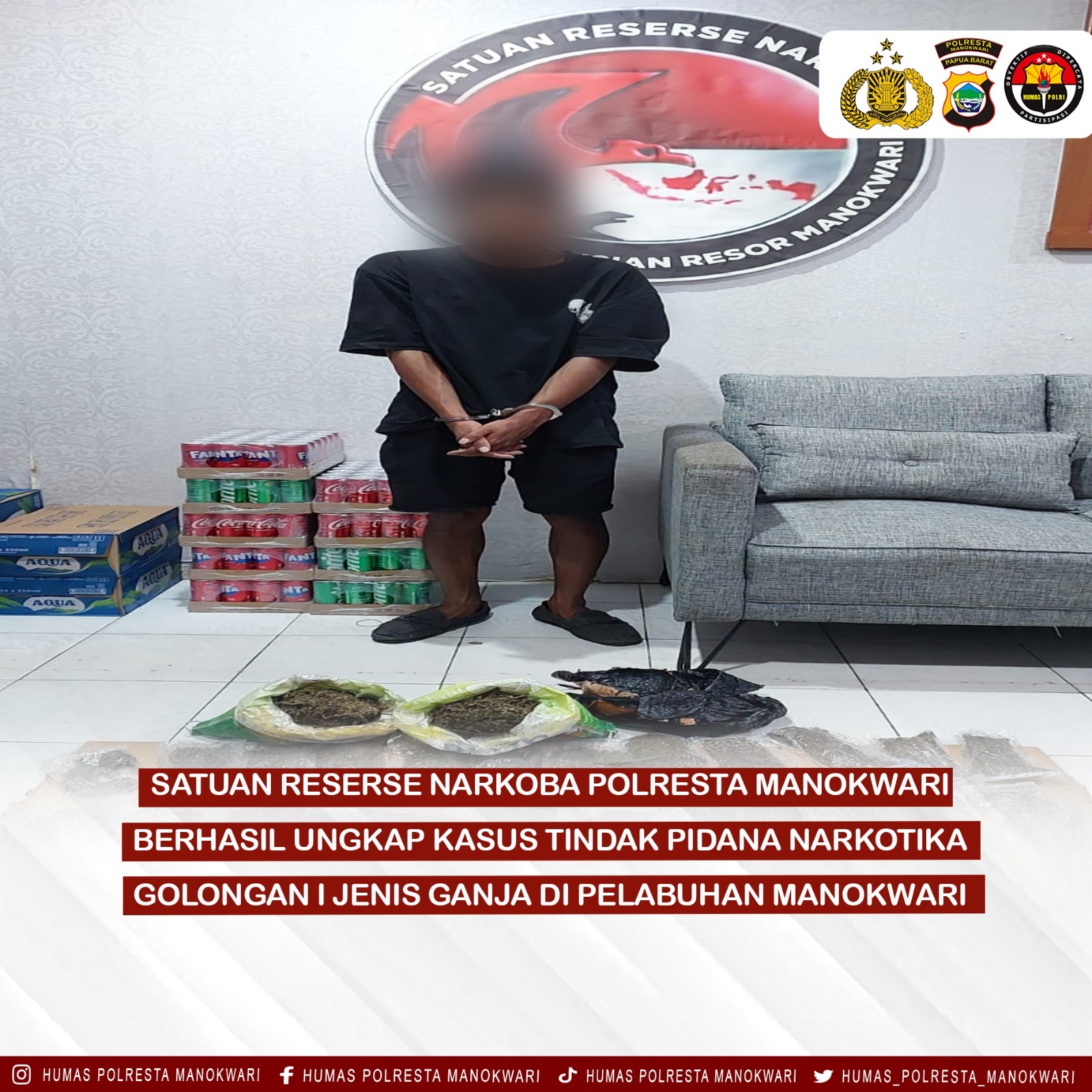 Manokwari –  Satuan Reserse Narkoba Polresta Manokwari berhasil mengungkap kasus Tindak Pidana berupa peredaran Narkotika  golongan I Jenis Ganja di Jalan Siliwangi Pelabuhan Manokwari Papua Barat.